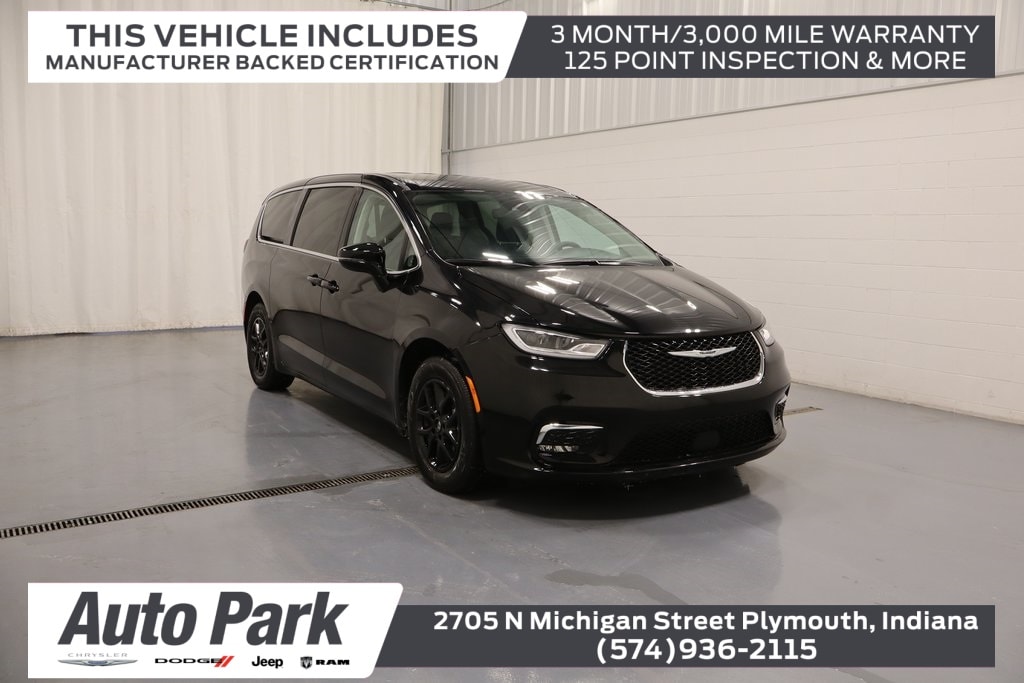 Our comprehensive pre-owned vehicle program covers CJDRF and most other makes/models from 0-10 years old with less than 120,000 miles. Each vehicle undergoes a thorough 125-point inspection to ensure quality and reliability. You'll also receive a generous 3-month/3,000-mile Maximum Care Limited Warranty, $500 trip interruption coverage, and $100 "Sign-and-Go" roadside assistance for peace of mind on the road. In case of emergencies, enjoy a $45/day car rental or taxi allowance. Additionally, you'll receive a three-month free trial of connected services and a CARFAX vehicle history report for full transparency. Drive confidently knowing that your pre-owned vehicle meets our highest standards of safety and performance. 2024 Chrysler Pacifica Diamond Black Crystal Pearlcoat Touring L FWD ACCIDENT FREE VEHICLE HISTORY, NON-SMOKER, ONE OWNER, Pacifica Touring L, Black/Alloy/Black Artificial Leather, 17" x 7.0" Aluminum Wheels, Alloy wheels, AM/FM radio: SiriusXM, Apple CarPlay/Android Auto, Automatic temperature control, Electronic Stability Control, Front dual zone A/C, Front fog lights, Fully automatic headlights, Heated door mirrors, Heated front seats, Heated steering wheel, ParkView Rear Back-Up Camera, Power door mirrors, Power driver seat, Power Liftgate, Quick Order Package 27L, Radio: Uconnect 5 w/10.1" Display, Rear air conditioning, Remote keyless entry, Touring Suspension.