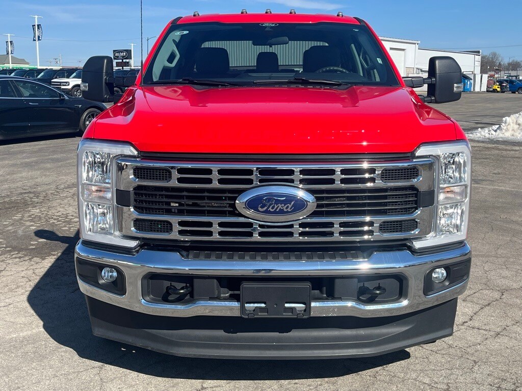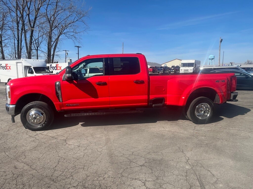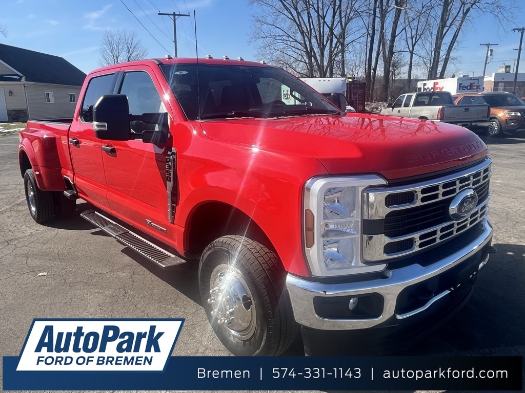 Vehicle Is Equipped With GVWR: 14,000 Lb Payload Package, F-350 SuperDuty XLT DRW, Power Stroke 6.7L V8 DI 32V OHV Turbodiesel, 4-Wheel Disc Brakes, ABS brakes, Air Conditioning, Brake assist, Compass, Delay-off headlights, Dual front impact airbags, Dual front side impact airbags, Dual rear wheels, Electronic Stability Control, Emergency communication system: SYNC 4 911 Assist, Front anti-roll bar, Front reading lights, Fully automatic headlights, Heated door mirrors, Illuminated entry, Internet access capable: FordPass Connect 5G, Low tire pressure warning, Outside temperature display, Overhead airbag, Overhead console, Panic alarm, Passenger vanity mirror, Power door mirrors, Power steering, Power windows, Rear anti-roll bar, Rear reading lights, Rear step bumper, Remote keyless entry, Security system, Speed control, Split folding rear seat, Steering wheel mounted audio controls, Tachometer, Telescoping steering wheel, Tilt steering wheel, Traction control, Trip computer, Turn signal indicator mirrors, and Variably intermittent wipers.