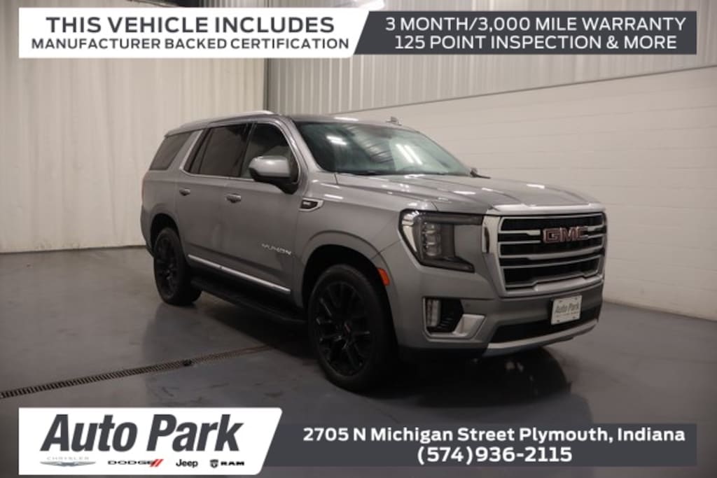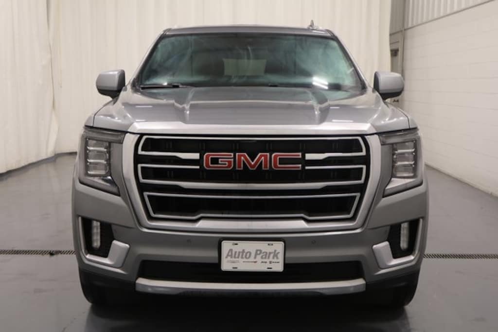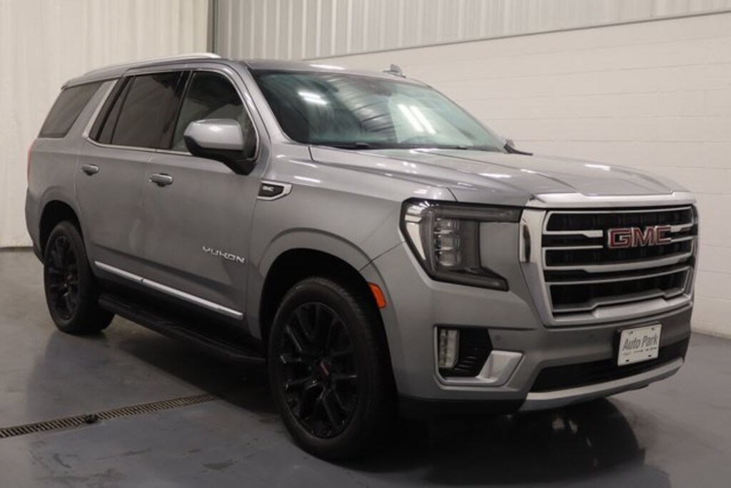 2023 GMC Yukon Sterling Metallic SLT 4WD ACCIDENT FREE VEHICLE HISTORY, NON-SMOKER, ONE OWNER, EcoTec3 5.3L V8, 10-Speed Automatic with Overdrive, 4WD, 2 Presets For Power Driver Seat, Alloy wheels, AM/FM radio: SiriusXM with 360L, Apple CarPlay/Android Auto, Auto High-beam Headlights, Automatic temperature control, Bose 9-Speaker Stereo Audio System Feature, Bright Chrome Bodyside Moldings, Bright Front & Rear Door Sill Plates, Chrome Door Handles w/Body-Color Strip, Dual-Pane Panoramic Power Sunroof, Electronic Stability Control, Front dual zone A/C, Front fog lights, Fully automatic headlights, Garage door transmitter, Hands-Free Power Programmable Rear Liftgate, Heated & Ventilated Driver & Front Passenger Seats, Heated door mirrors, Heated Driver & Front Passenger Seats, Inside Rear-View Auto-Dimming Mirror, IntelliBeam Automatic High Beam On/Off, Lane Change Alert w/Side Blind Zone Alert, Lane Keep Assist w/Lane Departure Warning, License Plate Front Mounting Package, Memory seat, Navigation System, Power door mirrors, Power driver seat, Power Liftgate, Preferred Equipment Group 4SA, Rear air conditioning, Remote keyless entry, Safety Alert Seat, Split folding rear seat, Spoiler, Steering wheel mounted audio controls, Universal Home Remote, Variably intermittent wipers, Wheels: 22" Multi-Spoke Gloss Black (LPO), Wireless Charging.