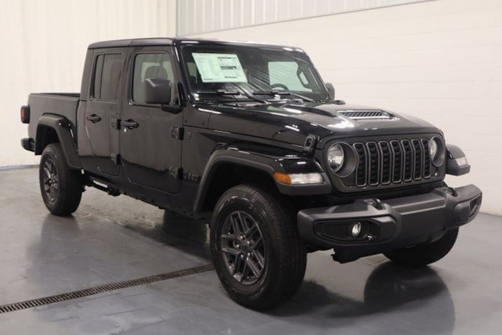 Black Clearcoat 2025 Jeep Gladiator Sport S 4WD 8-Speed Automatic 3.6L V6 24V VVT Gladiator Sport S, 3.6L V6 24V VVT, 4WD, Black Clearcoat, 12.3" Touchscreen Display, Advanced Brake Assist, Alexa Built-In, AM/FM radio: SiriusXM, Apple CarPlay/Android Auto, Automatic Headlamps, Auxiliary Switches, Black 3-Piece Hard Top, Body Color Fender Flares (2-Piece), Class IV Receiver Hitch, Convenience Group, Corning Gorilla Glass, Dark Sky Appearance Package, Daytime Running Lamp System, Deep Tint Sunscreen Windows, Electronic Stability Control, Emergency/Assistance Call, Enhanced Adaptive Cruise Control, Freedom Panel Storage Bag, Front Door Locks 2-Door Passive Entry, Front fog lights, Full Speed Forward Collision Warning Plus, Heated Front Seats, Heated Steering Wheel, Heavy-Duty Engine Cooling, Illuminated entry, Mold In Color Bumper w/Gloss Black, MOPAR Spray In Bedliner, Normal Duty Plus Suspension, ParkView Rear Back-Up Camera, Performance Hood, Power Heated Mirrors, Power windows, Premium Wrapped Steering Wheel, Quick Order Package 24S Sport S, Radio: Uconnect 5 w/12.3" Display, Rear Sliding Window, Rear Window Defroster, Remote keyless entry, Remote Start System, Security Alarm, Sun Visors w/Illuminated Vanity Mirrors, Trailer Hitch Zoom, Trailer Tow & Aux Switch Group, Universal Garage Door Opener, Wheels: 17" x 7.5" Gray. Price includes: $1000 - 2025 National Stellantis Loyalty Bonus Cash . Exp. 03/31/2026 $2000 - 2025 National Bonus Cash . Exp. 03/31/2026 $2250 - 2025 National Retail Bonus Cash . Exp. 03/31/2026 $500 - 2025 National 2025 Military Bonus Cash. Exp. 01/04/2027 $1,250 - Exp. 07/01/2026