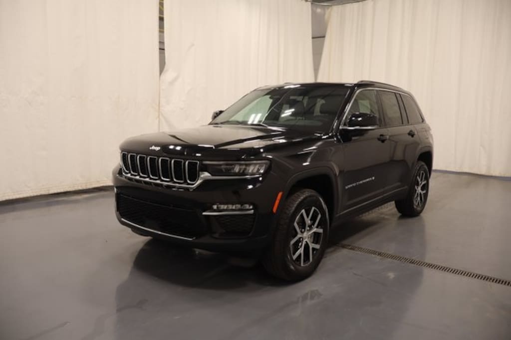 Diamond Black Crystal Pearlcoat 2025 Jeep Grand Cherokee Limited 4WD 8-Speed Automatic 3.6L V6 24V VVT Grand Cherokee Limited, 4WD, Diamond Black Crystal Pearlcoat, Global Black Artificial Leather, 220 Amp Alternator, 7 & 4-Pin Wiring Harness, Active Noise Control System, Alloy wheels, AM/FM radio: SiriusXM with 360L, Automatic Headlamp Levelling System, Automatic temperature control, Capri Leatherette Seats, Class IV Receiver Hitch, Dual-Pane Panoramic Sunroof, Electronic Stability Control, Front dual zone A/C, Front fog lights, Fully automatic headlights, Heated door mirrors, Heated front seats, Heated rear seats, Heated steering wheel, Heavy-Duty Engine Cooling, Memory seat, Navigation System, ParkView Rear Back-Up Camera, Power door mirrors, Power driver seat, Power Liftgate, Power passenger seat, Quick Order Package 22E, Radio: Uconnect 5 Nav w/10.1" Display, Rear Load Levelling Suspension, Remote keyless entry, Spoiler, Steering wheel mounted audio controls, Trailer Hitch Zoom, Trailer Tow Package, Turn signal indicator mirrors, Wheels: 18" x 8" Polished/Painted Aluminum. Price includes: $1000 - 2025 Midwest BC Conquest Bonus Cash. Exp. 01/05/2026 $1500 - 2025 National Stellantis Loyalty Retail Bonus Cash . Exp. 01/05/2026 $2000 - 2025 Midwest BC Conquest Bonus Cash. Exp. 01/05/2026 $2250 - 2025 National Retail Bonus Cash . Exp. 01/05/2026 $500 - 2025 National 2025 First Responder Bonus Cash. Exp. 01/05/2026 $1,250 - Exp. 12/31/2025