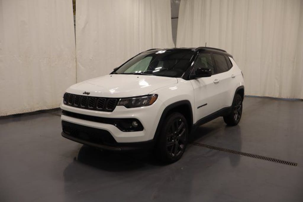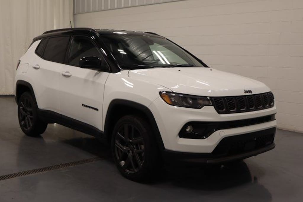 Bright White Clearcoat 2026 Jeep Compass Limited 4WD 8-Speed Automatic 2.0L I4 DOHC 4WD, Bright White Clearcoat, Black Artificial Leather, Alloy wheels, Auto High-beam Headlights, Automatic temperature control, Black Day Light Opening Moldings, Electronic Stability Control, Front dual zone A/C, Front fog lights, Gloss Black Surround/Neutral Gray Rings, Heated door mirrors, Heated front seats, Heated steering wheel, Limited Altitude Pack, Neutral Gray Exterior Accents, Neutral Gray Exterior Badging, ParkView Rear Back-Up Camera, Piano Black Interior Accents, Power door mirrors, Power driver seat, Power Liftgate, Quick Order Package 29W Limited Altitude, Remote keyless entry, Spoiler, Steering wheel mounted audio controls, Tilt steering wheel, Traction control, Turn signal indicator mirrors, Wheels: 18" x 7" Painted Diamond Cut Aluminum, Wheels: 19" x 7.5" Aluminum Painted. Price includes: $1000 - 2026 National Retail Bonus Cash . Exp. 03/31/2026 $1000 - 2026 National Stellantis Loyalty Bonus Cash . Exp. 03/31/2026 $1500 - 2026 National SFS Lease Loyalty Bonus Cash . Exp. 03/31/2026 $500 - 2026 Great Lakes BC Bonus Cash . Exp. 03/31/2026 $500 - 2026 National 2026 First Responder Bonus Cash . Exp. 01/04/2027 $1,250 - Exp. 07/01/2026