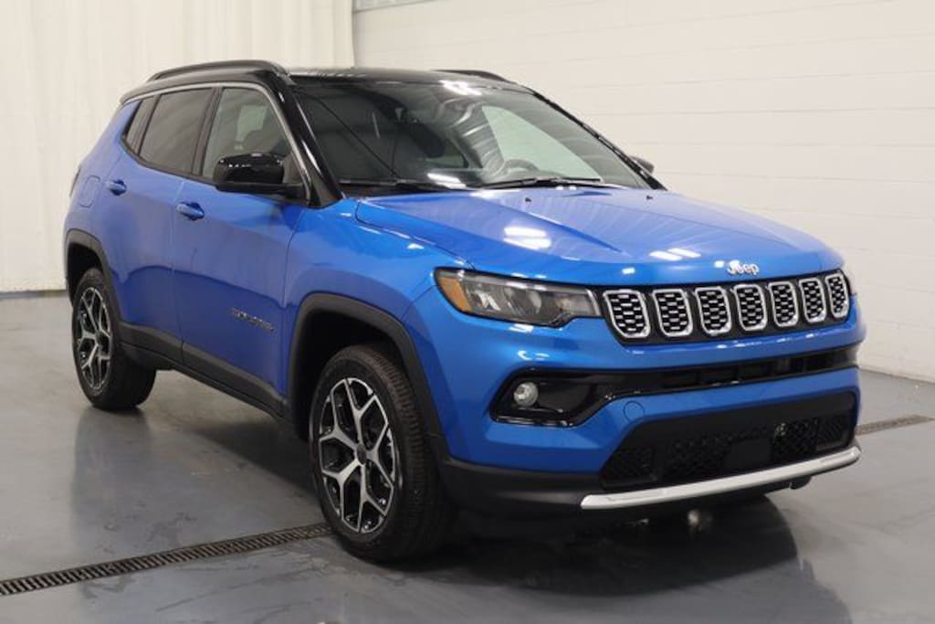 HYDRO BLUE PEARLCOAT 2026 Jeep Compass Limited 4WD 8-Speed Automatic 2.0L I4 DOHC Compass Limited, 2.0L I4 DOHC, 4WD, 10.1" Touchscreen Display, Alexa Built-In, Alloy wheels, Automatic temperature control, Cluster 10.25" TFT Color Display, Connected Travel & Traffic Services, Electronic Stability Control, Front dual zone A/C, Front fog lights, Fully automatic headlights, GPS Navigation, HD Radio, Heated door mirrors, Heated front seats, Heated steering wheel, Integrated Voice Command w/Bluetooth, ParkView Rear Back-Up Camera, Power door mirrors, Power driver seat, Power Front/Fixed Rear Full Sunroof, Power Liftgate, Premium Alpine Speaker System, Remote keyless entry, SiriusXM w/360L, Spoiler, Steering wheel mounted audio controls, Sun, Sound & Nav Group, Turn signal indicator mirrors. Price includes: $1000 - 2026 National Retail Bonus Cash . Exp. 03/31/2026 $1000 - 2026 National Stellantis Loyalty Bonus Cash . Exp. 03/31/2026 $1500 - 2026 National SFS Lease Loyalty Bonus Cash . Exp. 03/31/2026 $500 - 2026 Great Lakes BC Bonus Cash . Exp. 03/31/2026 $500 - 2026 National 2026 First Responder Bonus Cash . Exp. 01/04/2027 $595 - 2026 National Select Inventory Bonus Cash. Exp. 01/04/2027 $1,250 - Exp. 07/01/2026