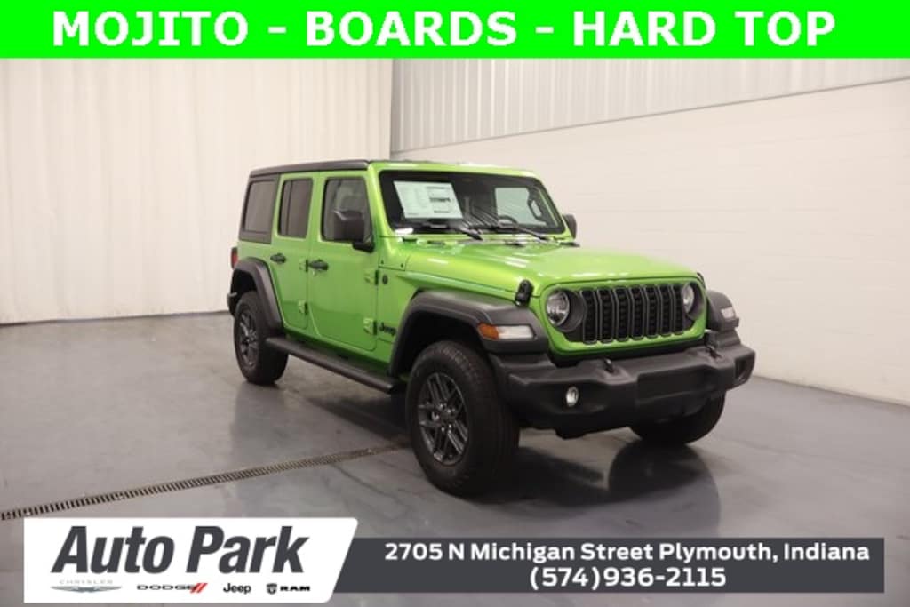 Mojito 2026 Jeep Wrangler Sport S 4WD 8-Speed Automatic 2.0L I4 DOHC Wrangler Sport S, 8-Speed Automatic, 4WD, 2-Door Passive Entry, Front Door Locks, 7 & 4 Pin Wiring Harness, ABS brakes, Advanced Brake Assist, Air Conditioning w/Auto Temperature Control, Air Filtering, AM/FM radio: SiriusXM with 360L, Apple CarPlay/Android Auto, Automatic Headlamps, Auxiliary Switches, Class II Receiver Hitch, Cluster 7.0" TFT Color Display, Compass, Convenience Group, Corning Gorilla Glass, Deep Tint Sunscreen Windows, Electronic Stability Control, Emergency/Assistance Call, Enhanced Adaptive Cruise Control, Front fog lights, Full Speed Forward Collision Warning Plus, Heated Front Seats, Heated Steering Wheel, Illuminated entry, Low tire pressure warning, ParkView Rear Back-Up Camera, Power Heated Mirrors, Power windows, Premium Wrapped Steering Wheel, Quick Order Package 22S Sport S, Radio: Uconnect 5 w/12.3" Display, Remote keyless entry, Remote Start System, Security Alarm, Steering wheel mounted audio controls, Sun Visors w/Illuminated Vanity Mirrors, Traction control, Trailer Tow & Aux Switch Group, Universal Garage Door Opener, Wheels: 17" x 7.5" Gray. Price includes: $1500 - 2026 National Stellantis Loyalty Retail Bonus Cash . Exp. 01/05/2026 $2000 - 2026 National Holiday Select Inventory Bonus Cash. Exp. 01/05/2026 $500 - 2026 National 2026 First Responder Bonus Cash . Exp. 01/05/2026 $1,250 - Exp. 12/31/2025