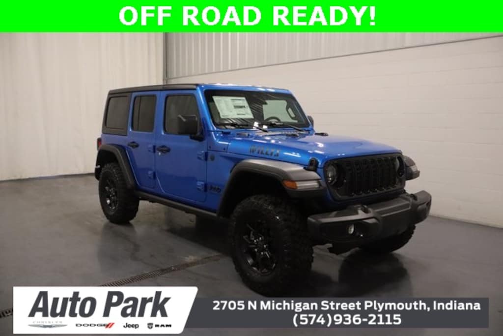 Hydro Blue Pearl Coat 2026 Jeep Wrangler Willys 4WD 8-Speed Automatic 2.0L I4 DOHC CONVENIENCE GROUP, BLACK 3 PIECE HARD TOP, CUSTOM PREFERRED PACKAGE 2TW, CUSTOMER PREFERRED PACKAGE 22W, Wrangler Willys, 4WD, Hydro Blue Pearl Coat, ABS brakes, Apple CarPlay/Android Auto, Compass, Electronic Stability Control, Illuminated entry, Low tire pressure warning, ParkView Rear Back-Up Camera, Remote keyless entry, Traction control. Price includes: $1500 - 2026 National Retail Bonus Cash . Exp. 12/01/2025