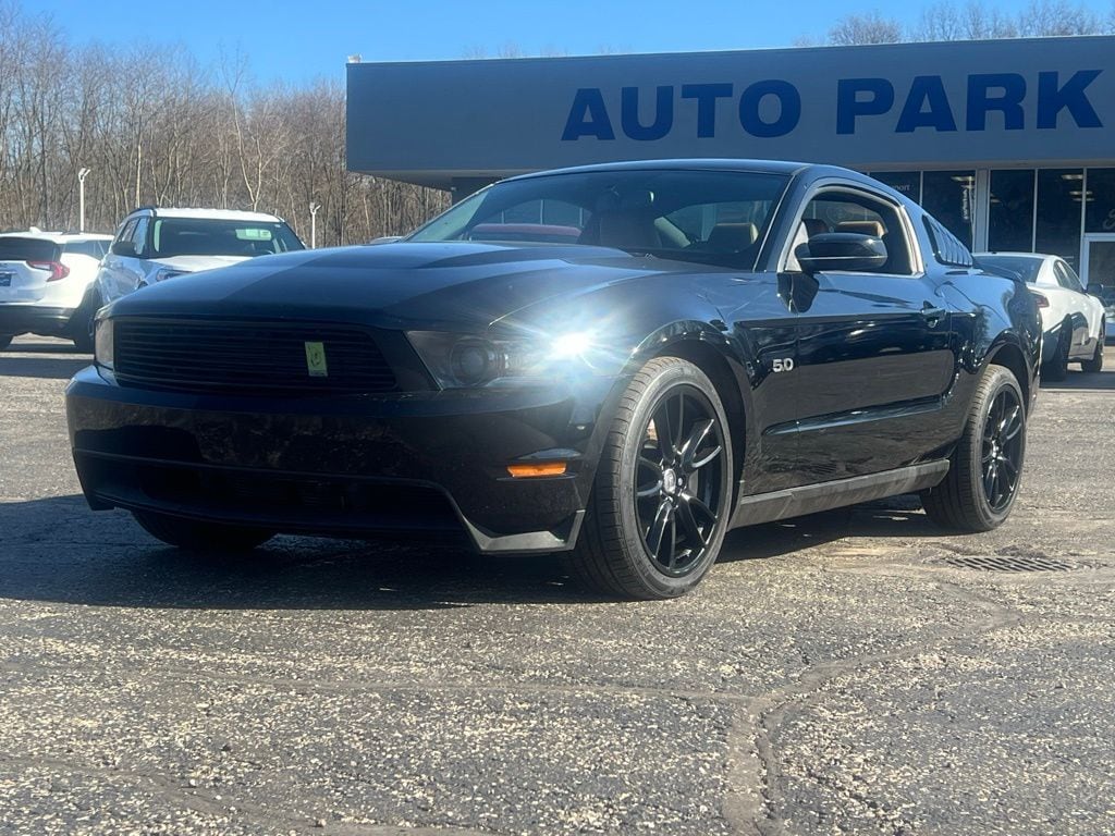 Vehicle Is Equipped With Brembo Brake Package (19" x 9.0" Dark Stainless Painted Aluminum Wheels and Unique Electronic Stability Control Tuning), Comfort Package (6-Way Power Passenger Seat and Heated Front Seats), Security Package (Active Anti-Theft System and Wheel Locking Kit), Mustang GT Premium, 2D Coupe, 5.0L V8 Ti-VCT 32V, 6-Speed Manual, RWD, Black, Saddle w/Leather Bucket Seats, 3.55 Limited Slip Rear Axle, 4-Wheel Disc Brakes, ABS brakes, Air Conditioning, Alloy wheels, AM/FM radio, Brake assist, Bumpers: body-color, CD player, Delay-off headlights, Driver door bin, Driver vanity mirror, Dual front impact airbags, Dual front side impact airbags, Electronic Stability Control, Front anti-roll bar, Front Bucket Seats, Front Center Armrest, Front fog lights, Front reading lights, Front wheel independent suspension, Fully automatic headlights, Illuminated entry, Low tire pressure warning, Occupant sensing airbag, Outside temperature display, Panic alarm, Passenger door bin, Passenger vanity mirror, Power door mirrors, Power steering, Power windows, Premium audio system: Shaker 500, Radio data system, Radio: Shaker 500 AM/FM Stereo w/In-Dash CD/MP3, Rear anti-roll bar, Rear window defroster, Remote keyless entry, SIRIUS Satellite Radio, Speed control, Speed-sensing steering, Split folding rear seat, Spoiler, Tachometer, Tilt steering wheel, Traction control, Trip computer, Variably intermittent wipers, and Voltmeter.