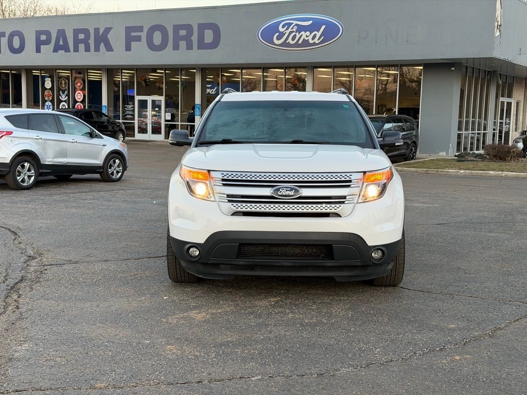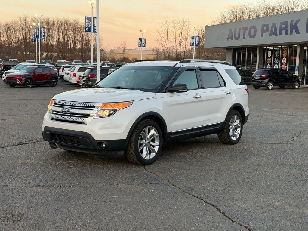 Vehicle Is Equipped With Comfort Package (Leather-Trimmed Heated Bucket Seats), Driver Connect Package (Auto-Dimming Rear-View Mirror and SYNC w/MyFord Touch), Equipment Group 202B (Dual Zone Electronic Automatic Temperature (DEATC), Premium Audio System w/9 Speakers, Radio: AM/FM Stereo w/Single CD/MP3 Capable, Rear-View Camera, and Remote Start System), Explorer XLT, 4D Sport Utility, 3.5L 6-Cylinder SMPI DOHC, 6-Speed Automatic with Select-Shift, 4WD, White Platinum Metallic Tri-Coat, Charcoal Black w/Leather-Trimmed Heated Bucket Seats, 20" Polished Aluminum Wheels, 3.65 Axle Ratio, 3rd row seats, 4-Wheel Disc Brakes, 6 Speakers, ABS brakes, Air Conditioning, AM/FM radio: SiriusXM, Brake assist, Bumpers: body-color, CD player, Compass, Delay-off headlights, Driver door bin, Driver vanity mirror, Dual front impact airbags, Dual front side impact airbags, Electronic Stability Control, Four wheel independent suspension, Front anti-roll bar, Front Bucket Seats, Front Center Armrest, Front fog lights, Front reading lights, Fully automatic headlights, Heated door mirrors, Illuminated entry, Knee airbag, Low tire pressure warning, Occupant sensing airbag, Outside temperature display, Overhead airbag, Overhead console, Panic alarm, Passenger door bin, Passenger vanity mirror, Power door mirrors, Power driver seat, Power Liftgate, Power passenger seat, Power steering, Power windows, Radio data system, Rear air conditioning, Rear anti-roll bar, Rear Parking Sensors, Rear reading lights, Rear window defroster, Rear window wiper, Remote keyless entry, Roof rack: rails only, Security system, Speed control, Speed-sensing steering, Speed-Sensitive Wipers, Split folding rear seat, Spoiler, Steering wheel mounted audio controls, SYNC w/MyFord, Tachometer, Telescoping steering wheel, Tilt steering wheel, Traction control, Trip computer, Turn signal indicator mirrors, Unique Cloth Bucket Seats, and Variably intermittent wipers.