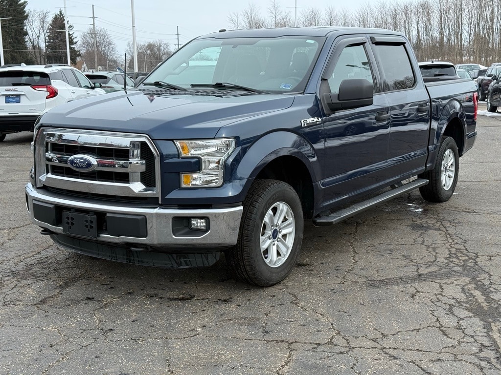 Vehicle Is Equipped With Equipment Group 300A Base, GVWR: 2,880 kg (6,350 lb) Payload Package, F-150 XLT, 4D SuperCrew, 3.5L V6 Ti-VCT, 6-Speed Automatic Electronic, 4WD, Blue Jeans Metallic, Dark Earth Gray w/Cloth 40/20/40 Front Seat, 3.73 Axle Ratio, 4-Wheel Disc Brakes, 7 Speakers, ABS brakes, Air Conditioning, Alloy wheels, AM/FM radio: SiriusXM, Block heater, Brake assist, Bumpers: chrome, CD player, Compass, Delay-off headlights, Driver door bin, Driver vanity mirror, Dual front impact airbags, Dual front side impact airbags, Electronic Stability Control, Front anti-roll bar, Front fog lights, Front reading lights, Front wheel independent suspension, Fully automatic headlights, Illuminated entry, Low tire pressure warning, Occupant sensing airbag, Outside temperature display, Overhead airbag, Panic alarm, Passenger door bin, Passenger vanity mirror, Power door mirrors, Power steering, Power windows, Radio data system, Radio: Single-CD w/SiriusXM Satellite, Rear reading lights, Rear step bumper, Remote keyless entry, Security system, Speed control, Speed-sensing steering, Split folding rear seat, Steering wheel mounted audio controls, SYNC Voice Activated Connectivity System, Tachometer, Telescoping steering wheel, Tilt steering wheel, Traction control, Variably intermittent wipers, Voltmeter, and Wheels: 17" Silver Painted Aluminum.