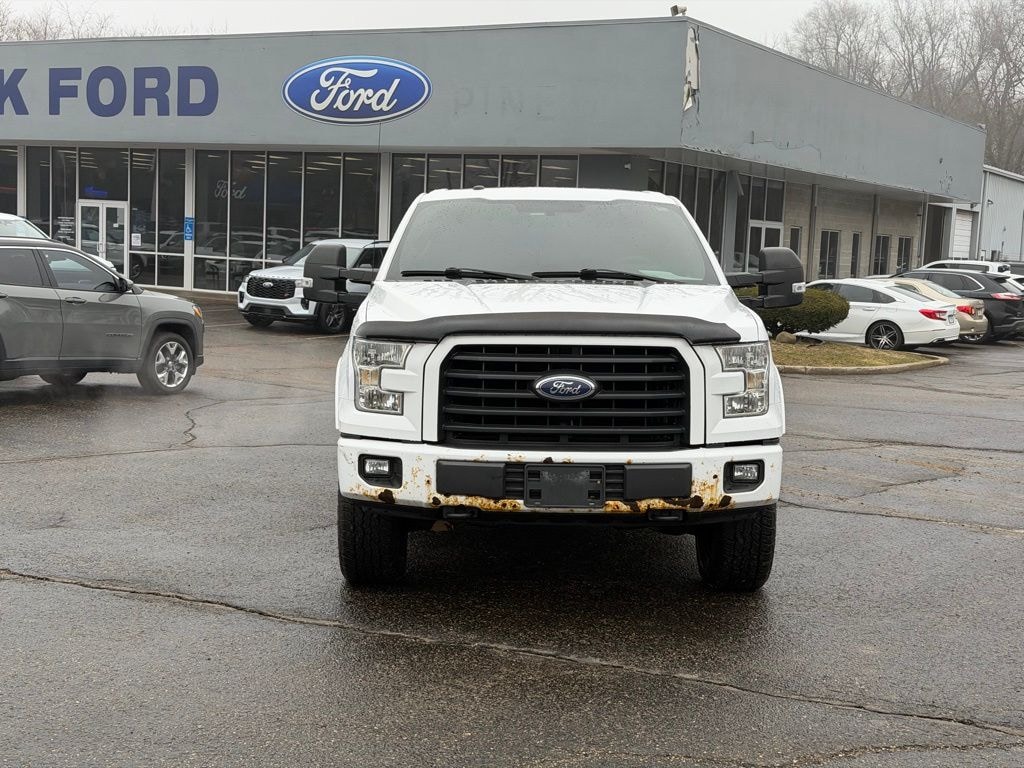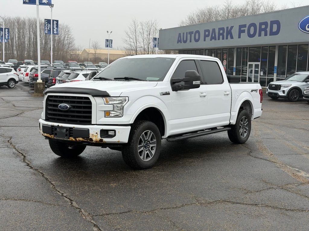 Vehicle Is Equipped With Equipment Group 302A Luxury (10-Way Power Driver's & Passenger Seats, 110V/400W Outlet, 4.2" Productivity Screen in Instrument Cluster, Auto-Dimming Rear-View Mirror, BoxLink, Class IV Trailer Hitch Receiver, Cloth 40/20/40 Front Seat, Heated Front Seats, Leather-Wrapped Steering Wheel, LED Box Lighting, Power Glass Heated Sideview Mirrors, Power-Adjustable Pedals, Power-Sliding Rear Window, Radio: Single-CD w/SiriusXM Satellite, Rear Under-Seat Storage, Rear View Camera w/Dynamic Hitch Assist, Rear Window Defroster, Remote Start System, Reverse Sensing System, SYNC, and SYNC 3), GVWR: 7,000 lbs Payload Package, XLT Chrome Appearance Package (Chrome Billet Style Grille w/Chrome Surround, Chrome Door & Tailgate Handles w/Body-Color Bezel, Chrome Step Bars, and Single-Tip Chrome Exhaust), XLT Sport Appearance Package (Accent-Color Step Bars, Black Billet Style Grille w/Body-Color Surround, Body-Color Door & Tailgate Handles, Body-Color Front & Rear Bumpers, Box Side Decal, and Wheels: 18" 6-Spoke Machined-Aluminum), F-150 XLT, 4D SuperCrew, 5.0L V8 FFV, 6-Speed Automatic Electronic, 4WD, Oxford White, Black w/Unique Sport Cloth 40/Console/40 Front-Seats or Unique Sport Cloth 40/Console/40 Front-Seats, 3.31 Axle Ratio, 4-Wheel Disc Brakes, 6 Speakers, 8-Way Power Driver's Seat, ABS brakes, Air Conditioning, AM/FM radio, BLIS Blind Spot Information System, Brake assist, Bumpers: chrome, CD player, Compass, Delay-off headlights, Driver door bin, Driver vanity mirror, Dual front impact airbags, Dual front side impact airbags, Electronic Stability Control, Front anti-roll bar, Front Center Armrest w/Storage, Front fog lights, Front reading lights, Front wheel independent suspension, Fully automatic headlights, Illuminated entry, Low tire pressure warning, Occupant sensing airbag, Outside temperature display, Overhead airbag, Panic alarm, Passenger door bin, Passenger vanity mirror, Power door mirrors, Power steering, Power windows, Radio data system, Radio: AM/FM Stereo/Single-CD Player, Rear reading lights, Rear step bumper, Remote keyless entry, Security system, Speed control, Speed-sensing steering, Split folding
