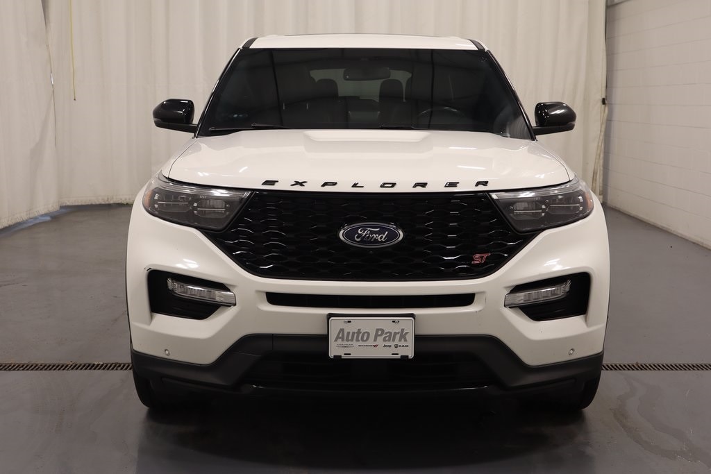 2022 Ford Explorer Star White Metallic Tri-Coat ST 4WD ACCIDENT FREE VEHICLE HISTORY, NON-SMOKER, ONE OWNER, Explorer ST, 3.0L EcoBoost V6, 4WD, Ebony w/Leather Heated/Ventilated Captain's Chairs, 110V/150W AC Power Outlet, 360-Degree Camera w/Split View, Auto-Dimming Rearview Mirror (Interior), Automatic temperature control, Electronic Stability Control, Equipment Group 401A, Evasive Steering Assist, Exterior Parking Camera Rear, Ford Co-Pilot360 Assist+, FordPass Connect, Front dual zone A/C, Front fog lights, Front Parking Sensors, Front Rain-Sensing Wipers, Fully automatic headlights, Hands-Free Foot-Activated Liftgate, Heated door mirrors, Heated front seats, Heated steering wheel, Intelligent Adaptive Cruise Control, Memory Driver's Seat, Memory seat, Performance Front & Rear Brakes, Power door mirrors, Power driver seat, Power Liftgate, Power Tilt/Telescoping Steering Column, Radio: B&O Sound System by Bang & Olufsen, Rear air conditioning, Remote keyless entry, Reverse Brake Assist, Second Row Heated Seats, Sideview Mirrors w/Gloss Black Caps, Speed Sign Recognition, ST High Package, ST Street Pack, Steering wheel mounted audio controls, SYNC 3 Communications & Entertainment System, Third Row PowerFold (Folds Flat), Twin Panel Moonroof, Universal Garage Door Opener (UGDO), Voice-Activated Touchscreen Navigation System, Wheels: 21" Aluminum, Wireless Charging Pad.