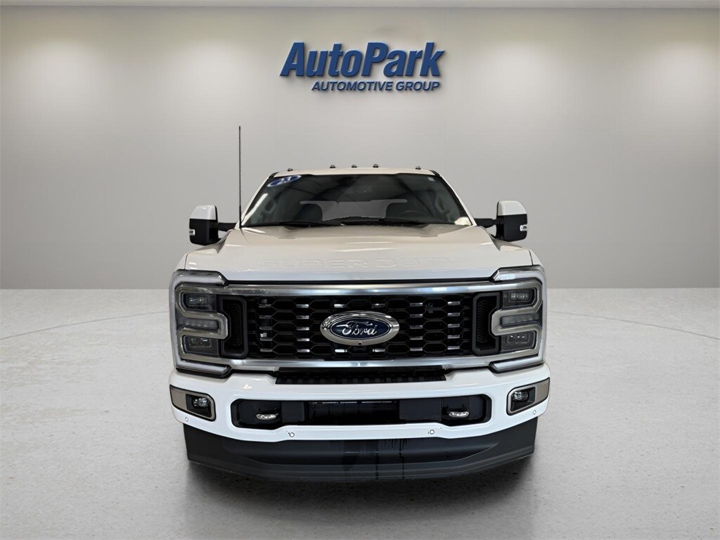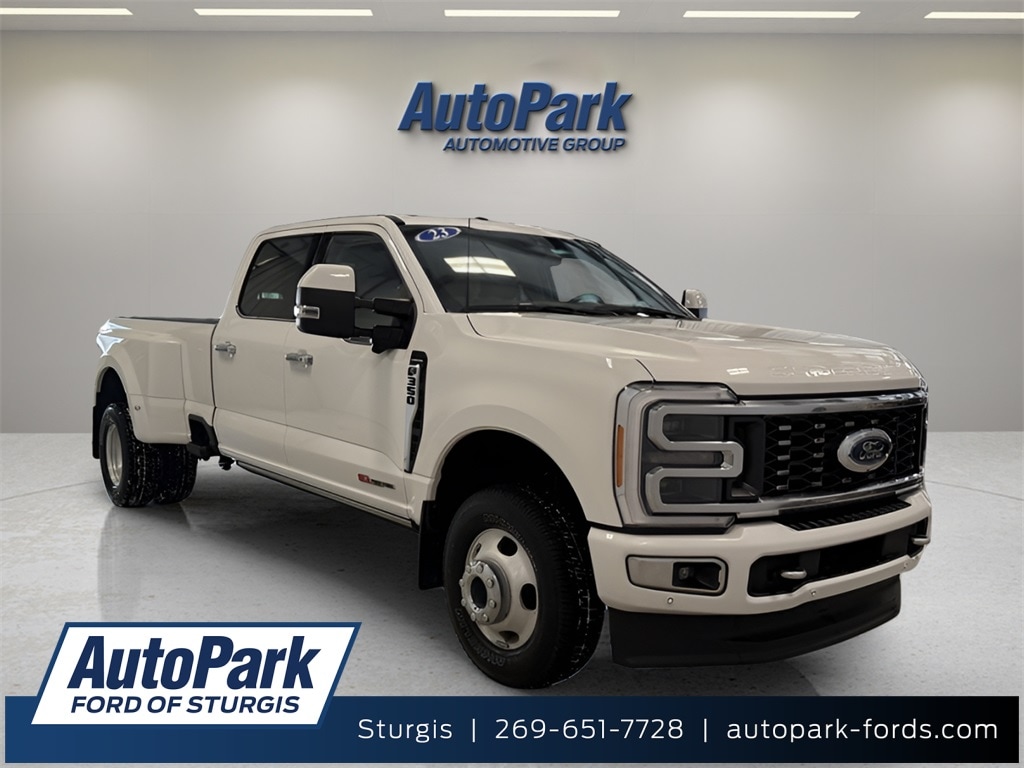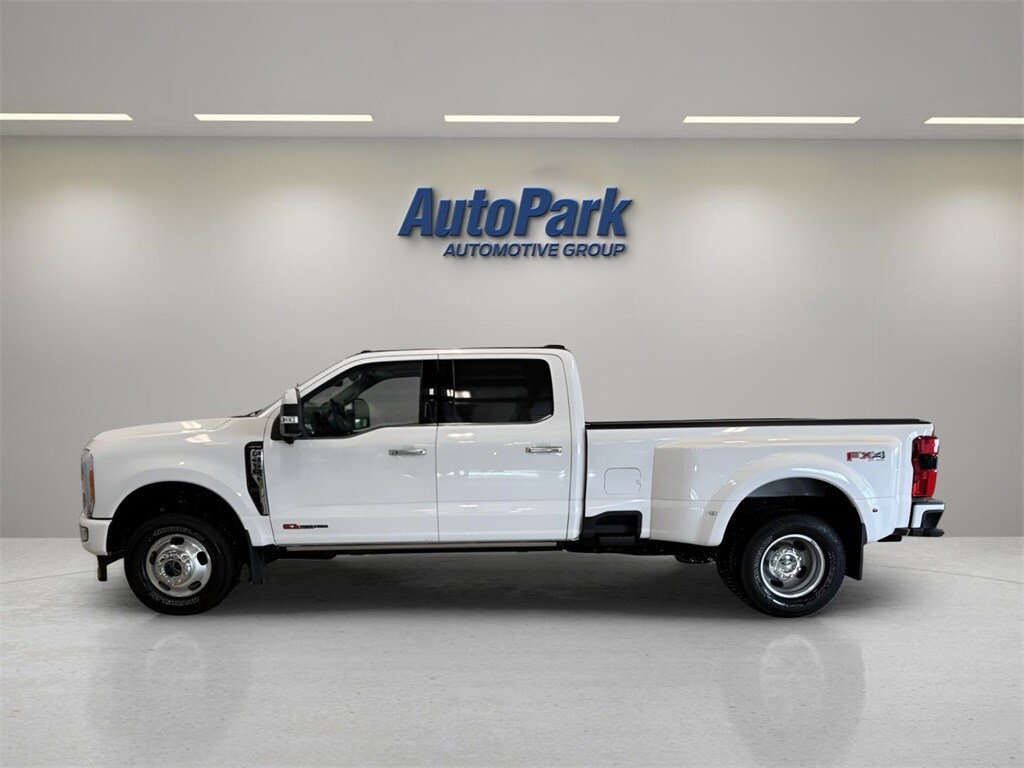 Vehicle Is Equipped With FX4 Off-Road Package (Hill Descent Control, Off-Road Specifically Tuned Shock Absorbers, and Unique FX4 Off-Road Box Decal), GVWR: 14,000 lb Payload Package, Heavy-Service Front Suspension Package, Power Stroke 6.7L V8 DI 32V OHV Turbodiesel, 4WD, 17" Forged Polished Aluminum Wheels, 4-Wheel Disc Brakes, ABS brakes, Adjustable pedals, Air Conditioning, Alloy wheels, AM/FM radio: SiriusXM with 360L, Auto High-beam Headlights, Auto tilt-away steering wheel, Auto-dimming Rear-View mirror, Automatic temperature control, Brake assist, Compass, Delay-off headlights, Driver door bin, Driver vanity mirror, Dual front impact airbags, Dual front side impact airbags, Dual rear wheels, Electronic Stability Control, Emergency communication system: SYNC 4 911 Assist, Engine Block Heater, Exterior Parking Camera Rear, Flow-Through Console, Front anti-roll bar, Front Bucket Seats, Front Center Armrest, Front dual zone A/C, Front fog lights, Front reading lights, Fully automatic headlights, Garage door transmitter, Gooseneck Hitch Kit (Pre-Installed), Heated door mirrors, Heated front seats, Heated rear seats, Heated steering wheel, Illuminated entry, Individual Trailer TPMS (Pre-Installed), Leather steering wheel, Low tire pressure warning, Memory seat, Navigation system: Connected Navigation, Outside temperature display, Overhead airbag, Overhead console, Panic alarm, Passenger door bin, Passenger vanity mirror, Pedal memory, Power door mirrors, Power driver seat, Power passenger seat, Power steering, Power windows, Radio: B&O Unleashed Sound System by Bang & Olufsen, Rain sensing wipers, Rapid-Heat Supplemental Cab Heater, Rear anti-roll bar, Rear reading lights, Rear seat center armrest, Rear step bumper, Rear window defroster, Remote keyless entry, Retractable Tonneau Pickup Box Cover (Pre-Installed), Security system, SiriusXM Radio w/360L, Speed control, Split folding rear seat, Steering wheel memory, Steering wheel mounted audio controls, SYNC 4 w/Enhanced Voice Recognition, Tachometer, Telescoping steering wheel, Tilt steering wheel, Traction control, Trip computer, Turn signal indicator mirrors, Variably intermittent wipers, and Ventilated front seats.