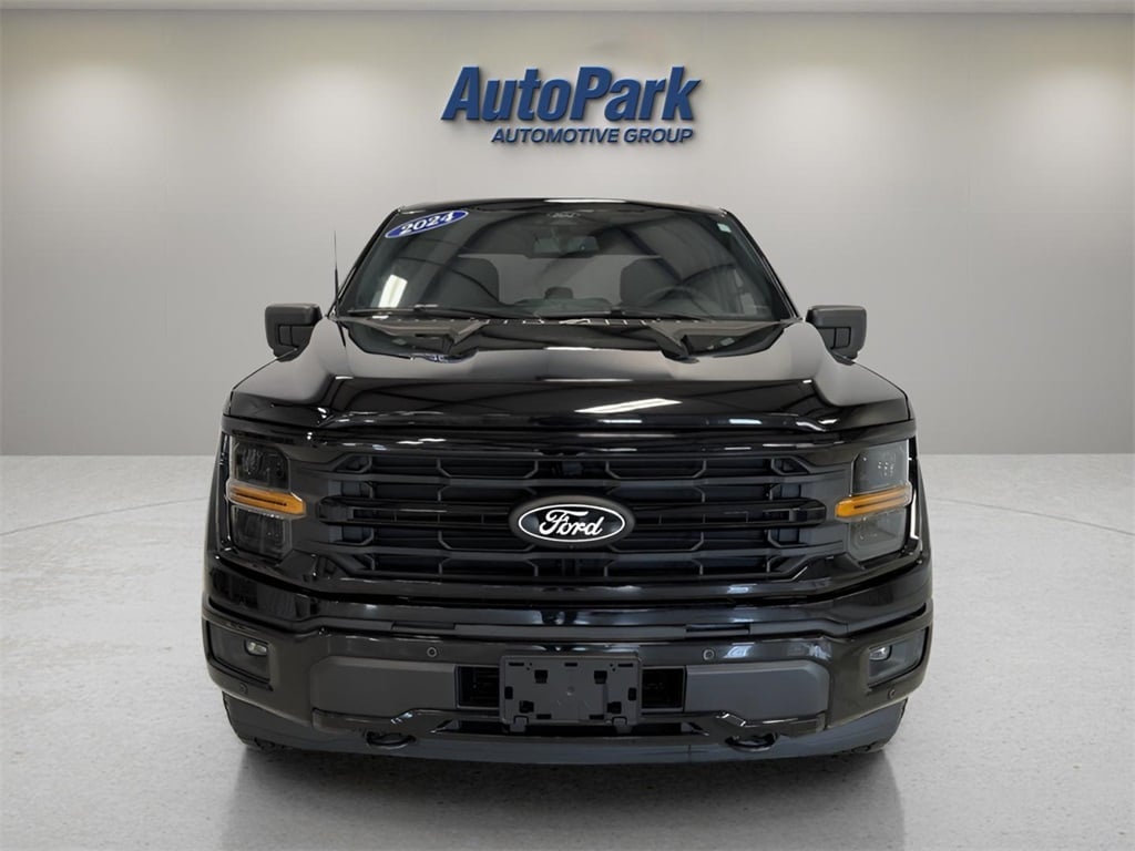 Vehicle Is Equipped With GVWR: 6,650 lbs Payload Package, F-150 XLT, 10-Speed Automatic, 4WD, Black, 3.55 Axle Ratio, 4-Wheel Disc Brakes, 6 Speakers, ABS brakes, Air Conditioning, Alloy wheels, AM/FM radio: SiriusXM with 360L, Auto High-beam Headlights, Auto-dimming Rear-View mirror, Automatic temperature control, Brake assist, Bumpers: chrome, Chrome wheels, Cloth 40/20/40 Front Seat, Compass, Delay-off headlights, Driver door bin, Driver vanity mirror, Dual front impact airbags, Dual front side impact airbags, Electronic Stability Control, Emergency communication system: SYNC 4 911 Assist, Front anti-roll bar, Front Center Armrest w/Storage, Front dual zone A/C, Front fog lights, Front reading lights, Front wheel independent suspension, Fully automatic headlights, Heated door mirrors, Illuminated entry, Low tire pressure warning, Navigation system: Connected Navigation, Occupant sensing airbag, Outside temperature display, Overhead airbag, Overhead console, Panic alarm, Passenger door bin, Passenger vanity mirror, Power door mirrors, Power driver seat, Power steering, Power windows, Radio data system, Radio: AM/FM SiriusXM w/360L, Rear reading lights, Rear step bumper, Rear window defroster, Remote keyless entry, Security system, Speed control, Split folding rear seat, Steering wheel mounted audio controls, SYNC 4 w/Enhanced Voice Recognition, Tachometer, Telescoping steering wheel, Tilt steering wheel, Traction control, Trip computer, Variably intermittent wipers, Voltmeter, and Wheels: 18" Chrome-Like PVD.