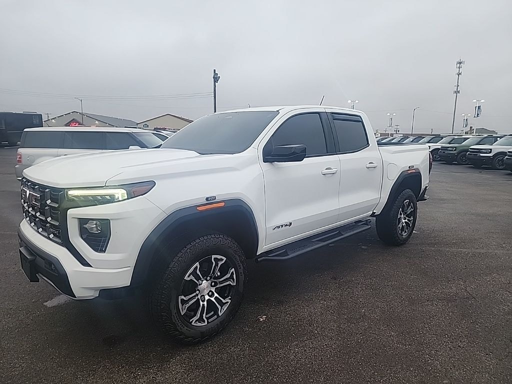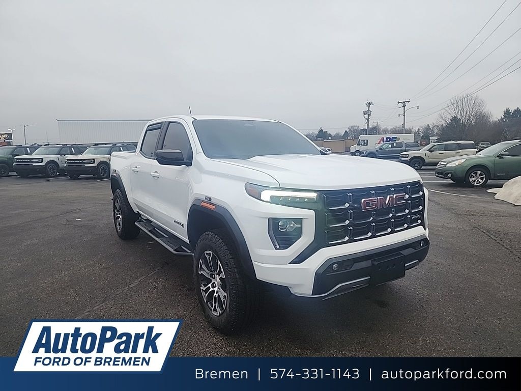 Vehicle Is Equipped With Preferred Equipment Group 4SG (120-Volt Bed Mounted Power Outlet, 2 Rear USB Ports in Center Console (Charge-Only), 8-Way Power Driver Seat Adjuster, Automatic Emergency Braking, Automatic Locking Rear Differential, Canyon Pro Safety, Driver & Front Passenger Illuminated Visors, Dual-Zone Automatic Air Conditioning, EZ-Lift & Lower Tailgate, Following Distance Indicator, Forward Collision Alert, Front LED Fog Lamps, Front Pedestrian & Bicyclist Braking, Heated Driver & Front Passenger Seats, Heated Power-Adjustable Outside Mirrors, Inside Rear-View Auto-Dimming Mirror, IntelliBeam Automatic High Beam On/Off, Interior Overhead Courtesy Light w/Dual Reading Lamp, Lane Keep Assist w/Lane Departure Warning, Manual Rear-Sliding Window, MultiStow Tailgate, Power Driver Lumbar Control Seat Adjuster, Rear of Console 120-Volt Power Outlet, Rear-Window Electric Defogger, Remote Vehicle Starter System, Tailgate Keyed Cylinder Lock, and Tilt & Telescopic Manual Steering Column), ProGrade Trailering System (Trailering App System), Trailering Package (Integrated Trailer Brake Controller), 2 1st Row USB Charge/Data Ports, 220 Amps Alternator, 3.42 Rear Axle Ratio, 4-Way Manual Front Passenger Seat Adjuster, 4-Wheel Disc Brakes, 6 Speakers, 6-Speaker Audio System Feature, ABS brakes, Air Conditioning, Alloy wheels, AM/FM radio: SiriusXM, Apple CarPlay/Android Auto, Auto High-beam Headlights, Auto-dimming Rear-View mirror, Automatic Stop/Start, Automatic temperature control, Brake assist, Bumpers: body-color, Cloth/CoreTec Seat Trim, Compass, Delay-off headlights, Driver door bin, Driver Mode Selector, Driver vanity mirror, Dual front impact airbags, Dual front side impact airbags, Electronic Stability Control, Front anti-roll bar, Front Bucket Seats, Front Center Armrest, Front dual zone A/C, Front fog lights, Front License Plate Kit, Front Passenger Seatback Map Pocket, Front reading lights, Front wheel independent suspension, Heated door mirrors, Heated front seats, Illuminated entry, Low tire pressure warning, Navigation System, Occupant sensing airbag, Outside temperature display, Overhead airbag, Overhead console, Panic alarm, Passenger door bin, Passenger vanity mirror, Power door mirrors, Power driver seat, Power steering, Power windows, Radio data system, Radio: 11.3" Diagonal Premium GMC Infotainment Sys, Rear reading lights, Rear step bumper, Rear window defroster, Remote keyless entry, Security system, SiriusXM w/360L, Speed control, Speed-sensing steering, Split folding rear seat, Steering wheel mounted