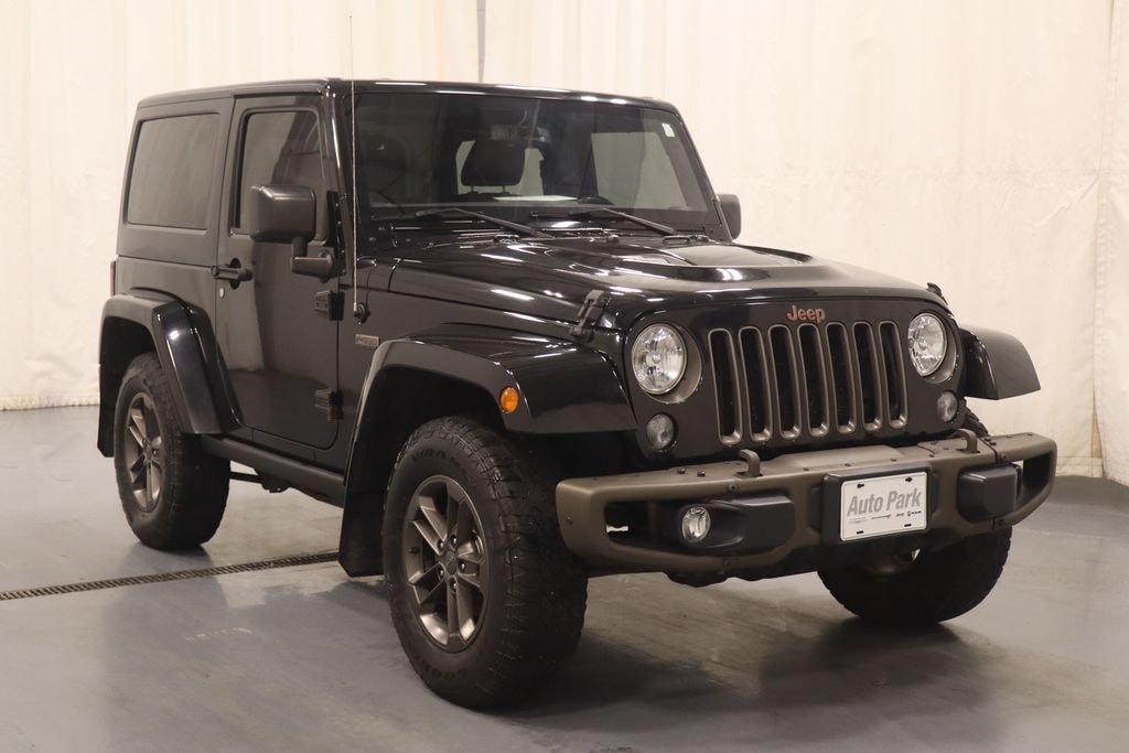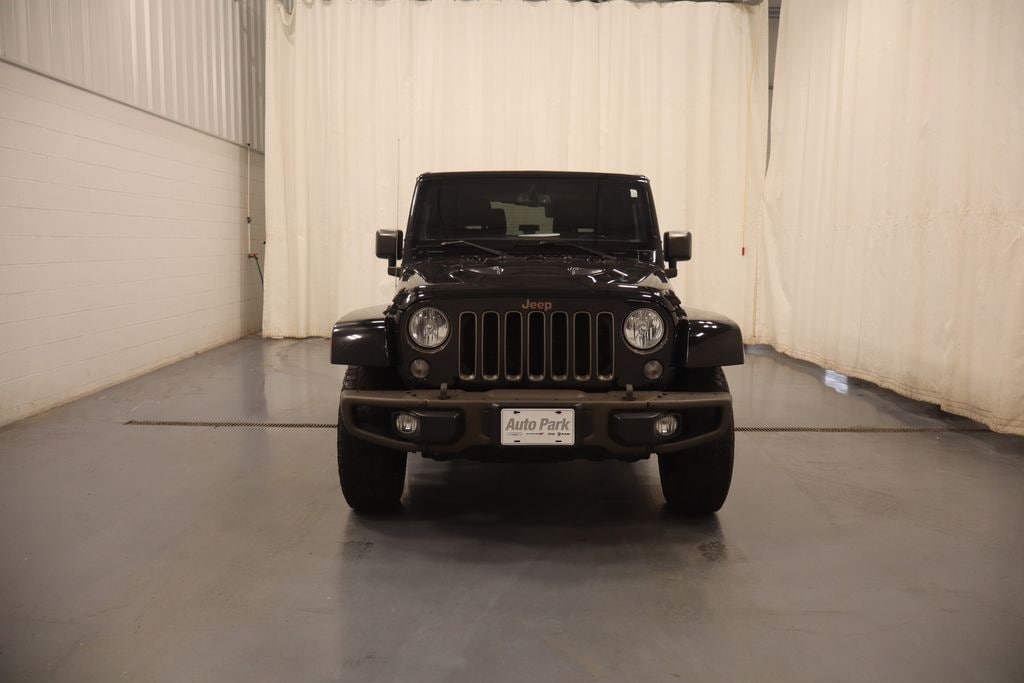 2016 Jeep Wrangler Black Clearcoat Sahara 4WD ACCIDENT FREE VEHICLE HISTORY, NON-SMOKER, Wrangler Sahara, 3.6L V6 24V VVT, 6-Speed Manual, 4WD, Black Leather, 2 Front & 1 Rear Bronze Tow Hook, 75th Anniversary Badge, Alloy wheels, Anti-Spin Differential Rear Axle, Body Color Grille w/Bronze Accent, Bronze Jeep Grille Badge, Bronze Trail Rated Badge, Chrome/Leather Wrapped Shift Knob, Connectivity Group, Heated Front Seats, Hood w/Power Dome, Jeep 75th Anniversary Package, Leather Seat w/Cloth (Ombre Mesh), Leather Wrapped Steering Wheel, Low Gloss Black Wrangler Decal, MOPAR Slush Mats, Moroccan Sun Instrument Panel Bezel, Moroccan Sun Interior Accents, Painted Front Bumper, Painted Rear Bumper, Premium Black Sunrider Soft Top, Quick Order Package 23H 75th Anniversary, Radio: 430, Remote USB Port, Sunrider Soft Top, Tire Pressure Monitoring Display, Uconnect Voice Command w/Bluetooth, Vehicle Information Center, Wheels: 17 x 7.5 Aluminum Bronze.