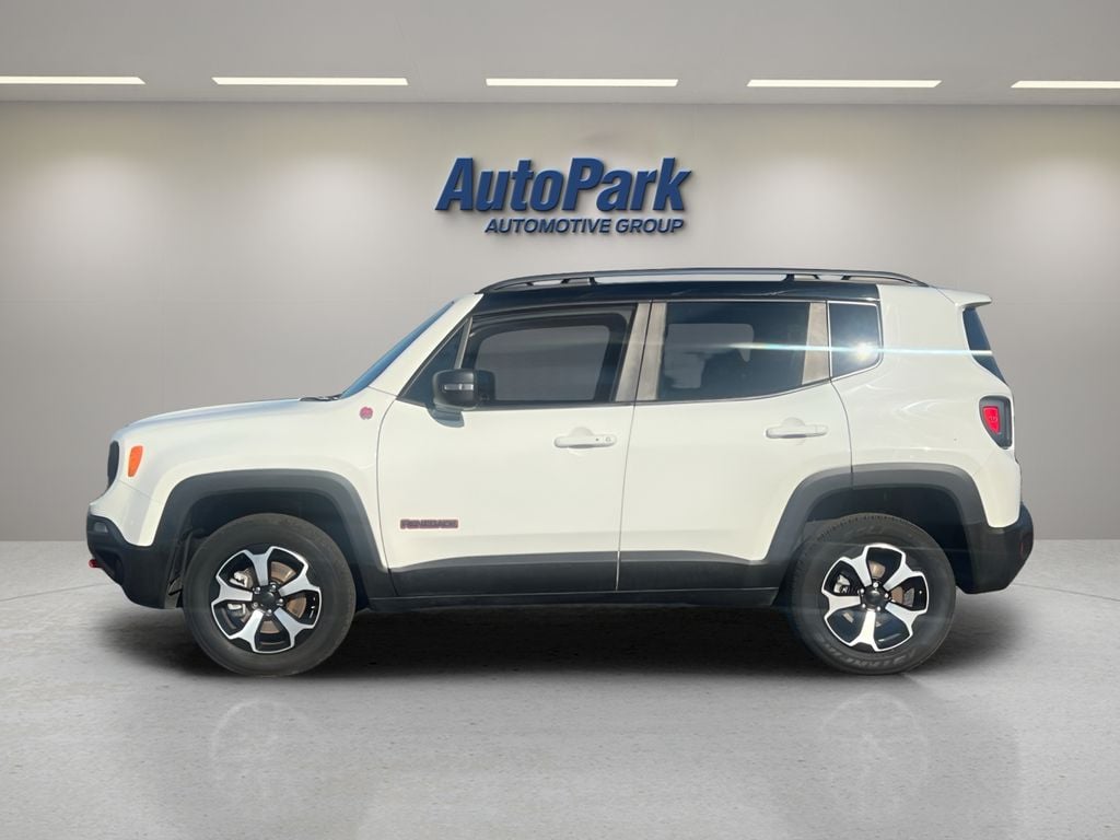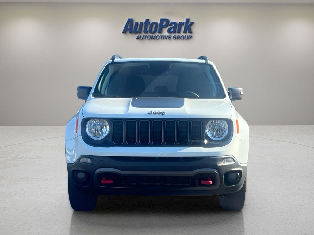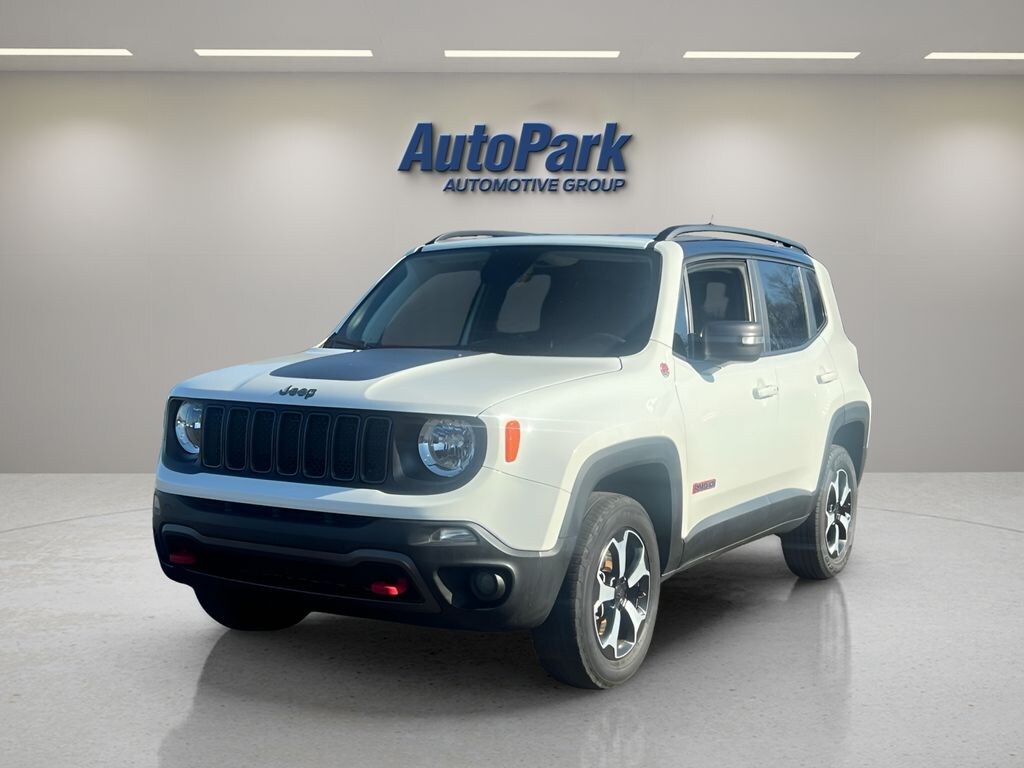 Vehicle Is Equipped With Cold Weather Group (Heated Front Seats, Heated Steering Wheel, and Windshield Wiper De-Icer), Passive Entry Remote Start Package (Keyless Entry w/Panic Alarm), Quick Order Package 22C, Renegade Trailhawk, 4D Sport Utility, 1.3L I4, 9-Speed 948TE Automatic, 4WD, Alpine White Clearcoat, Black w/Cloth Low-Back Bucket Seats, 17" x 6.5" Aluminum Wheels, 4-Wheel Disc Brakes, 4.585 Final Drive Ratio, 6 Speakers, ABS brakes, Air Conditioning, Alloy wheels, AM/FM radio: SiriusXM, Anti-whiplash front head restraints, Apple CarPlay/Android Auto, Automatic temperature control, Brake assist, Compass, Connectivity (Bridge Solution) (DISC), Delay-off headlights, Driver door bin, Driver vanity mirror, Dual front impact airbags, Dual front side impact airbags, Electronic Stability Control, Emergency communication system, Four wheel independent suspension, Front anti-roll bar, Front Bucket Seats, Front Center Armrest, Front dual zone A/C, Front fog lights, Front reading lights, Fully automatic headlights, Global Telematics Box Module (TBM) (DISC), Heated door mirrors, Illuminated entry, Knee airbag, Leather Shift Knob, Leather Wrapped Steering Wheel, Low tire pressure warning, Manual Adjust 4-Way Front Passenger Seat, Normal Duty Suspension, Occupant sensing airbag, Outside temperature display, Overhead airbag, Panic alarm, ParkView Rear Back-Up Camera, Passenger door bin, Passenger vanity mirror, Power door mirrors, Power steering, Power windows, Premium Cloth Low-Back Bucket Seats, Radio data system, Radio: Uconnect 4 w/7" Display, Rain sensing wipers, Rear anti-roll bar, Rear window defroster, Rear window wiper, Remote keyless entry, Roof rack: rails only, Speed control, Split folding rear seat, Spoiler, Steering wheel mounted audio controls, Tachometer, Telescoping steering wheel, Tilt steering wheel, Traction control, Trip computer, Turn signal indicator mirrors, Variably intermittent wipers, and Voltmeter.