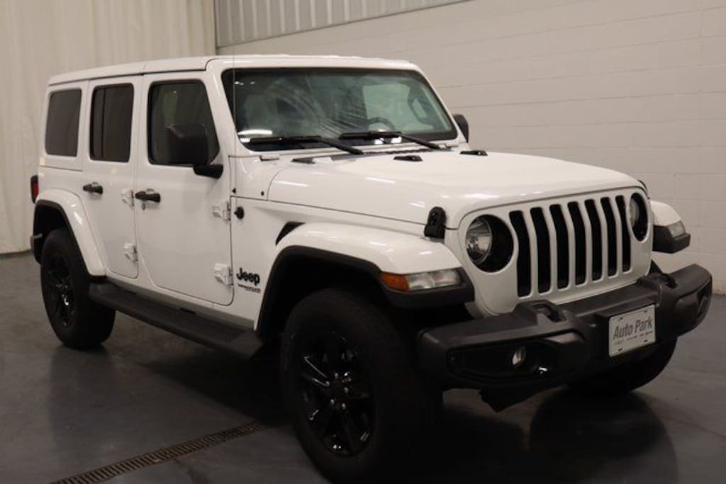 2020 Jeep Wrangler Bright White Clearcoat Unlimited Sahara Altitude 4WD ACCIDENT FREE VEHICLE HISTORY, NON-SMOKER, ONE OWNER, Wrangler Unlimited Sahara Altitude, 4WD, Bright White Clearcoat, 1-Year SiriusXM Guardian Trial, 4G LTE Wi-Fi Hot Spot, 5-Year SiriusXM Traffic Service, 5-Year SiriusXM Travel Link Service, 8.4" Radio & Premium Audio Group, 8.4" Touchscreen Display, Alloy wheels, Alpine Premium Audio System, Apple CarPlay/Android Auto, Auto-Dimming Rear-View Mirror, Automatic temperature control, Body Color 3-Piece Hard Top, Brake assist, Cold Weather Group, Dual Top Group, Electronic Stability Control, Emergency/Assistance Call, For Details, Visit DriveUconnect.com, Front dual zone A/C, Front fog lights, Fully automatic headlights, Garage door transmitter, GPS Navigation, HD Radio, Heated door mirrors, Heated Front Seats, Heated Steering Wheel, Heavy Duty Suspension w/Gas Shocks, ParkView Rear Back-Up Camera, Power door mirrors, Premium Black Sunrider Soft Top w/Dual Top Group, Radio: Uconnect 4C Nav w/8.4" Display, Remote keyless entry, SiriusXM Traffic Plus, SiriusXM Travel Link, Steering wheel mounted audio controls, Wheels: 18" x 7.5" Polished w/Gray Spokes.