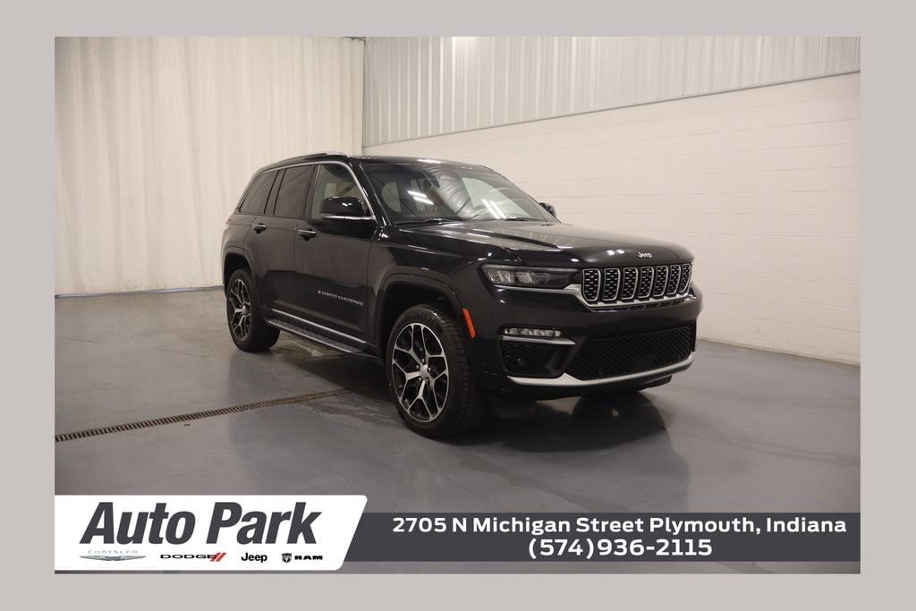2022 Jeep Grand Cherokee Diamond Black Crystal Pearlcoat Summit 4WD NON-SMOKER, ONE OWNER, Grand Cherokee Summit, 4WD, Tupelo/Black Leather, 19 Speakers High Performance Audio, 950 Watt Amplifier, Active Noise Control System, Adaptive suspension, Alloy wheels, Automatic temperature control, Deluxe Headliner, Electronic Stability Control, Front dual zone A/C, Front fog lights, Front Passenger Interactive Display, Fully automatic headlights, Heated door mirrors, Heated front seats, Heated rear seats, Heated steering wheel, Memory seat, MOPAR Bright Side Steps, Navigation System, Palermo Leather Door Trim, Palermo Leather Seats, Power driver seat, Power Liftgate, Power moonroof, Power passenger seat, Quick Order Package 22U Summit Reserve, Radio: Uconnect 5 Nav w/10.1" Display, Rear dual zone A/C, Roof rack: rails only, Steering wheel memory, Steering wheel mounted audio controls, Summit Reserve, Summit Reserve Badge, Ventilated front seats, Ventilated Rear Seats, Wheels: 21" x 9" Machined Face/Painted Aluminum.