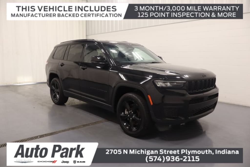 2023 Jeep Grand Cherokee L Diamond Black Crystal Pearlcoat Altitude 4WD ACCIDENT FREE VEHICLE HISTORY, NON-SMOKER, ONE OWNER, Grand Cherokee L Altitude, 3.6L V6 24V VVT, 4WD, Global Black Artificial Leather, 115V Auxiliary Power Outlet, 3rd Row Charge-Only USB Ports, Altitude Appearance Package, Automatic temperature control, Black Headliner, Capri Leatherette/Suede Seats, Delete Laredo Badge, Electronic Stability Control, Fully automatic headlights, Gloss Black Exterior Accents, Heated door mirrors, Heated Front Seats, Heated Steering Wheel, Molded In Color Black/Gloss Black Roof Rails, ParkView Rear Back-Up Camera, Power door mirrors, Power driver seat, Power Liftgate, Quick Order Package 23B Altitude, Radio: Uconnect 5 w/8.4" Display, Rain Sensitive Windshield Wipers, Rear air conditioning, Remote keyless entry, Remote Start System, Selectable Tire Fill Alert, Spoiler, Wheels: 20" x 8.5" Gloss Black Painted Aluminum, Wireless Charging Pad.