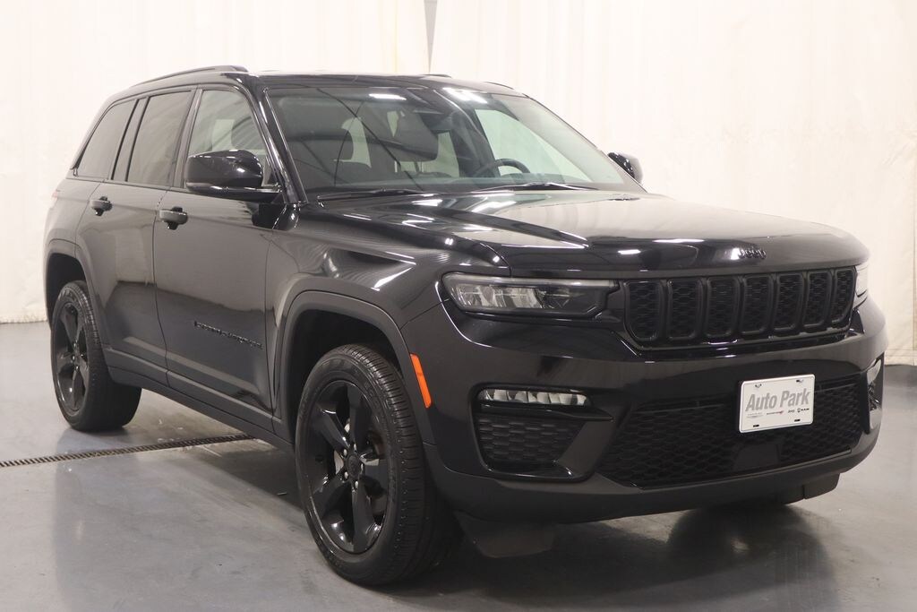 2023 Jeep Grand Cherokee Diamond Black Crystal Pearlcoat Limited 4WD ACCIDENT FREE VEHICLE HISTORY, NON-SMOKER, ONE OWNER, Grand Cherokee Limited, 4WD, Global Black Leather, Alloy wheels, AM/FM radio: SiriusXM with 360L, Automatic temperature control, Black Appearance Package, Capri Leatherette Seats, Electronic Stability Control, Front fog lights, Fully automatic headlights, Gloss Black Exterior Accents, Heated door mirrors, Heated front seats, Heated rear seats, Heated steering wheel, Illuminated entry, Memory seat, Molded In Color Black/Gloss Black Roof Rails, Navigation System, ParkView Rear Back-Up Camera, Power door mirrors, Power driver seat, Power Liftgate, Power passenger seat, Quick Order Package 22E, Radio: Uconnect 5 Nav w/10.1" Display, Remote keyless entry, Spoiler, Steering wheel mounted audio controls, Turn signal indicator mirrors, Wheels: 20" x 8.5" Gloss Black Painted Aluminum.