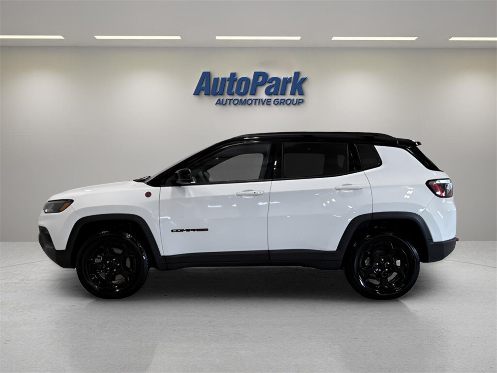 Vehicle Is Equipped With Quick Order Package 29E, Compass Trailhawk, 4WD, Bright White Clearcoat, 10.1" Touchscreen Display, 4-Wheel Disc Brakes, 4.398 Final Drive Ratio, 4G LTE Wi-Fi Hot Spot, 6 Speakers, ABS brakes, Air Conditioning, Alloy wheels, AM/FM radio: SiriusXM, Auto High-beam Headlights, Auto-dimming Rear-View mirror, Automatic temperature control, Brake assist, Bumpers: body-color, Compass, Delay-off headlights, Driver door bin, Driver vanity mirror, Dual front impact airbags, Dual front side impact airbags, Electronic Stability Control, Emergency communication system: Jeep Connect, For Details, Visit DriveUconnect.com, For More Info, Call 800-643-2112, Four wheel independent suspension, Front anti-roll bar, Front Bucket Seats, Front Center Armrest w/Storage, Front dual zone A/C, Front fog lights, Front License Plate Bracket, Front reading lights, Fully automatic headlights, Global Telematics Box Module (TBM), Heated door mirrors, Illuminated entry, Knee airbag, Leather Shift Knob, Leather steering wheel, Low tire pressure warning, Occupant sensing airbag, Outside temperature display, Overhead airbag, Overhead console, Panic alarm, ParkView Rear Back-Up Camera, Passenger door bin, Passenger vanity mirror, Power door mirrors, Power steering, Power windows, Premium Cloth/Leather Trim Bucket Seats, Radio: Uconnect 5 w/10.1" Display, Rain sensing wipers, Rear anti-roll bar, Rear seat center armrest, Rear window defroster, Rear window wiper, Remote keyless entry, Security system, SiriusXM Guardian - Included Trial (B), SiriusXM Radio Service, Speed control, Split folding rear seat, Spoiler, Steering wheel mounted audio controls, Tachometer, Telescoping steering wheel, Tilt steering wheel, Traction control, Trip computer, Turn signal indicator mirrors, Variably intermittent wipers, and Wheels: 17" x 6.5" Painted Black AluminuM.