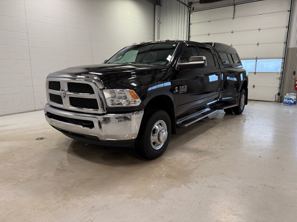 Vehicle Is Equipped With Chrome Appearance Group (Bright Front Bumper, Bright Grille, and Bright Rear Bumper), Popular Equipment Group (1-Year SiriusXM Radio Service, 40/20/40 Split Bench Seat, Carpet Floor Covering, Cloth 40/20/40 Bench Seat, For More Info, Call 800-643-2112, Front & Rear Floor Mats, Front Armrest w/Cupholders, Rear Folding Seat, Remote Keyless Entry, SiriusXM Satellite Radio, and Storage Tray), Quick Order Package 2FA Tradesman, Cummins 6.7L I6 Turbodiesel, 4WD, Brilliant Black Crystal Pearlcoat, Black Cloth, 180 Amp Alternator, 3.73 Axle Ratio, 4-Wheel Disc Brakes, 5-Year Trial Via Mobile Service, 5.0" Touchscreen Display, 5th Wheel/Gooseneck Towing Prep Group, 6 Speakers, 6000# Front Axle w/Hub Ext, ABS brakes, Air Conditioning, AM/FM radio, Box & Rear Fender Clearance Lamps, Brake assist, Clearance Lamps, Delay-off headlights, Driver door bin, Dual front impact airbags, Dual front side impact airbags, Dual Rear Wheels, Electric Shift-On-The-Fly Transfer Case, Electronic Stability Control, Electronically Controlled Throttle, For Details Visit DriveUconnect.com, Front anti-roll bar, Front Bumper Sight Shields, Front Center Armrest, Fully automatic headlights, GPS Antenna Input, HD Vinyl 40/20/40 Split Bench Seat, Heated door mirrors, Integrated Voice Command w/Bluetooth, Low tire pressure warning, Media Hub (USB, AUX), Mini Floor Console, Occupant sensing airbag, Overhead airbag, Overhead Console, ParkSense Rear Park Assist System, ParkView Rear Back-Up Camera, Passenger door bin, Power door mirrors, Power steering, Power windows, Radio data system, Radio: 3.0, Radio: Uconnect 3 w/5" Display, Rear step bumper, Remote USB Port - Charge Only, Speed control, Tachometer, Temperature & Compass Gauge, Tilt steering wheel, Tip Start, Tire Pressure Monitoring Delete, Traction control, Trailer Brake Control, Turn signal indicator mirrors, Uconnect Access Via Mobile, Variably intermittent wipers, Voltmeter, Wheels: 17" x 6.0" Steel Argent, Wheels: 17" x 6.0" Steel Chrome Clad, and Wheels: 18" x 8.0" SteeL.