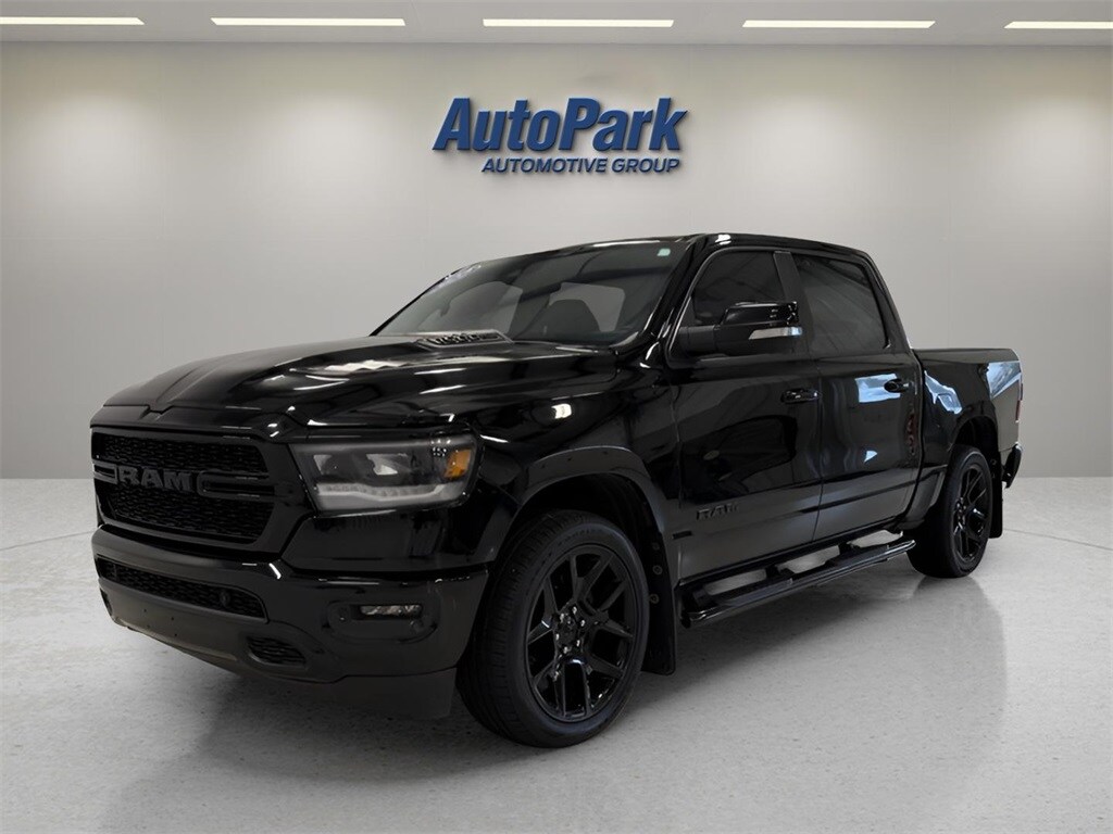 Vehicle Is Equipped With 4D Crew Cab, 8-Speed Automatic, Diamond Black Crystal Pearlcoat, ABS brakes, Alloy wheels, Compass, Electronic Stability Control, Front Heated Seats, Heated door mirrors, Heated Exterior Mirrors, Heated front seats, Illuminated entry, Low tire pressure warning, ParkView Rear Back-Up Camera, Remote keyless entry, Traction control, 1-Year SiriusXM Subscription, 20" x 9" Aluminum Wheels, 2nd Row In-Floor Storage Bins, 3 Rear Seat Head Restraints, 3.21 Rear Axle Ratio, 4-Way Front Headrests, 4-Wheel Disc Brakes, 4G LTE Wi-Fi Hot Spot, 6 Speakers, Adjustable pedals, Air Conditioning, AM/FM radio: SiriusXM, Apple CarPlay Capable, Apple CarPlay/Android Auto, Auto High-beam Headlights, Auto-dimming door mirrors, Auto-dimming Rear-View mirror, Black Dual Exhaust Tips, Block heater, Brake assist, Bucket Seats, Bumpers: body-colour, Cloth Low-Back Bucket Seats, Connectivity - US/Canada, Delay-off headlights, Driver door bin, Driver vanity mirror, Dual front impact airbags, Dual front side impact airbags, Exterior Mirrors w/Courtesy Lamps, Exterior Mirrors w/Turn Signals, For Details Visit DriveUconnect.ca, Front anti-roll bar, Front Bucket Seats, Front fog lights, Front reading lights, Front Seatback Map Pockets, Front wheel independent suspension, Fully automatic headlights, Garage door transmitter, Google Android Auto, GPS Antenna Input, Heated Steering Wheel, Heated steering wheel, Integrated Centre Stack Radio, Leather steering wheel, Occupant sensing airbag, Outside temperature display, Overhead airbag, Overhead console, Panic alarm, Passenger door bin, Passenger vanity mirror, Power 2-Way Driver Lumbar Adjust, Power door mirrors, Power driver seat, Power steering, Power windows, Radio data system, Radio: Uconnect 5 w/8.4" Display, Rear 60/40 Folding Seat, Rear anti-roll bar, Rear step bumper, Rear window defroster, Speed control, Split folding rear seat, Steering wheel mounted audio controls, Tachometer, Telescoping steering wheel, Tilt steering wheel, Trip computer, Turn signal indicator mirrors, USB Mobile Projection, Variably intermittent wipers, and VoltmeteR.